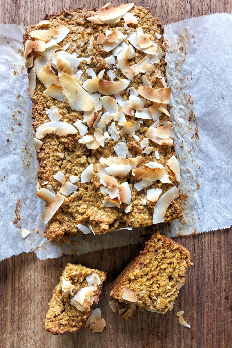 Great with a cup of tea or coffee, this nourishing loaf is similar in taste to your fav carrot cake, but is sweetened naturally with dates and maple syrup.